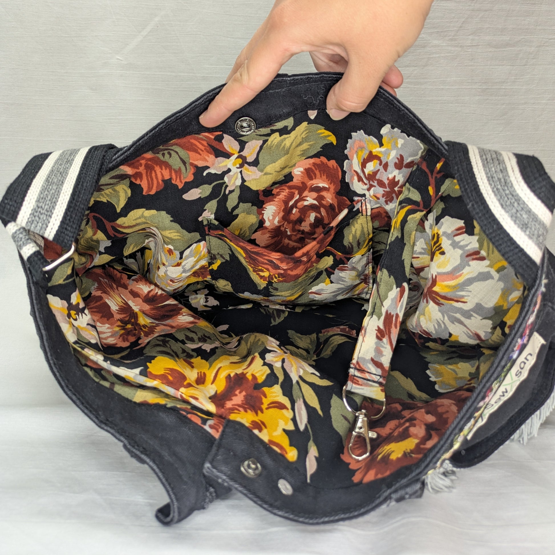 Fringe & Floral Recycled Denim Bag