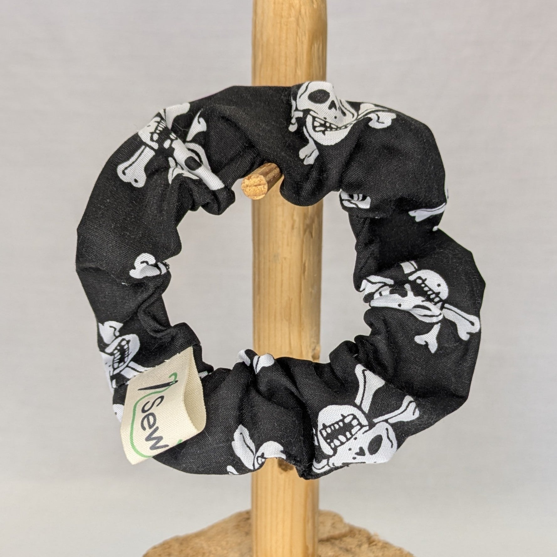 Add a spooky twist to your hairstyle! Handmade from dead stock fabric, each scrunchie features: