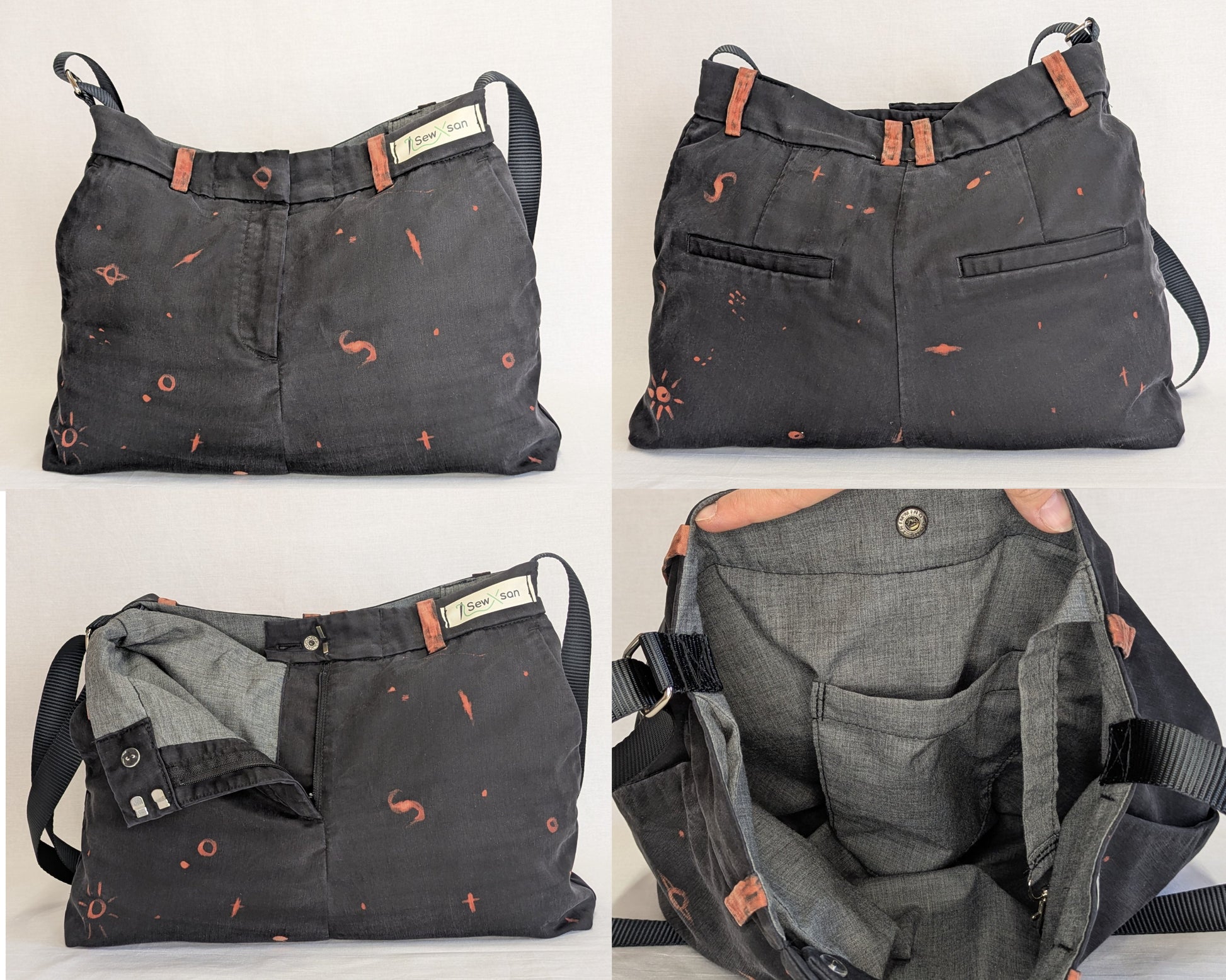All bags are handmade from reworked fabrics, so exact dimensions may vary slightly.